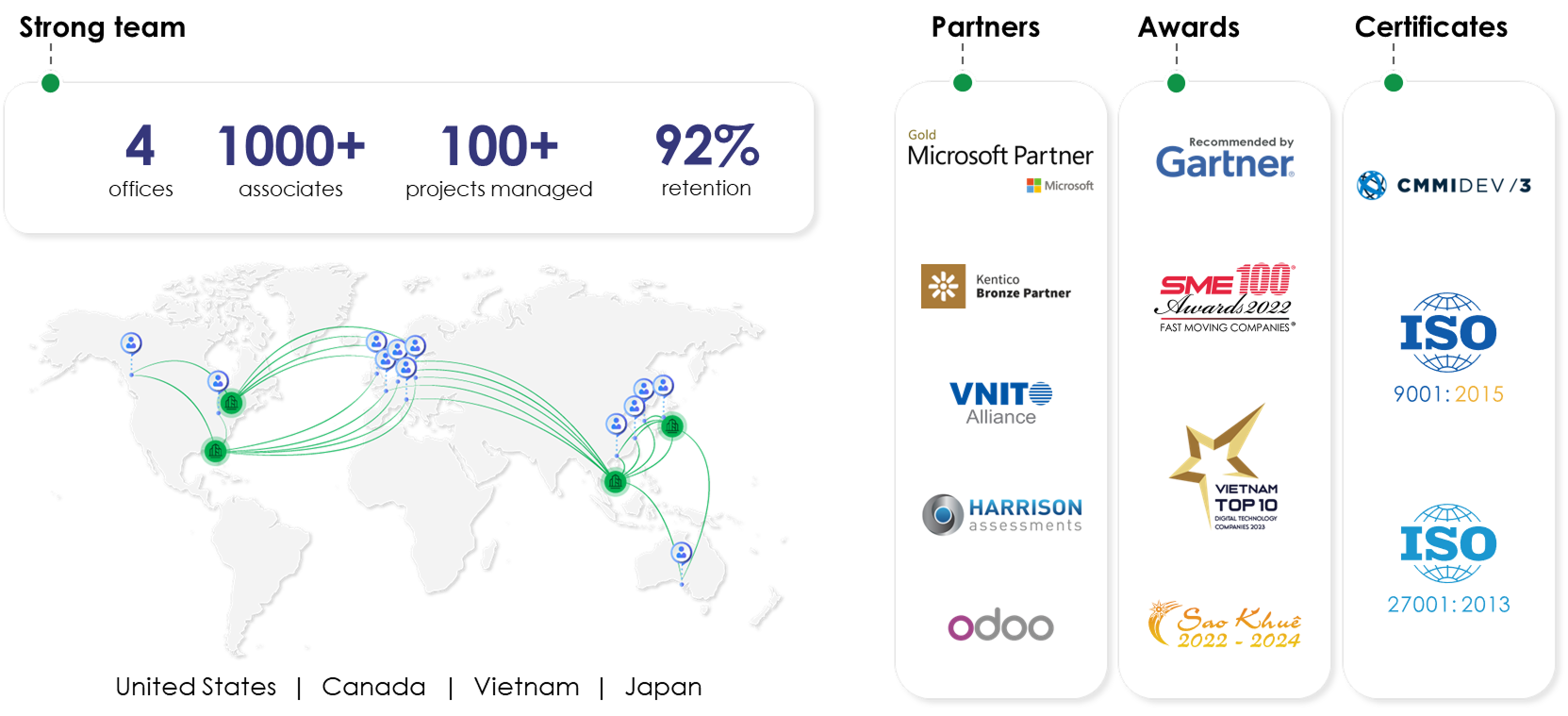 Imagine a seamless around-the-clock workflow. With onshore PMs in US and Canada handling challenges during your day, and a software development team in Vietnam pushing projects forward while you sleep, your projects never miss a beat.